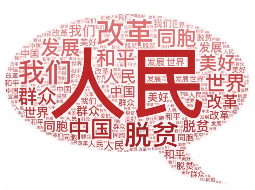 我將無我,不負人民。“人民”是習主席心中永遠的牽掛,這一點在他歷次的新年講話中體現(xiàn)得特別明顯。通過對6次新年講話的文本進行詞頻分析后發(fā)現(xiàn),“人民”一直是習近平新年賀詞當中的高頻詞,除此之外,“我們”“群眾”“改革”“脫貧”等詞語也多次出現(xiàn)。