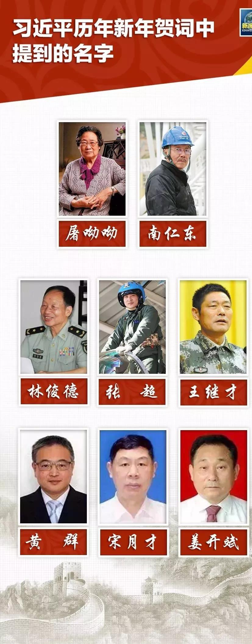不僅是為人民點贊,習主席在6篇新年賀詞中也提到了一些具體的名字,并為一些群體點贊——